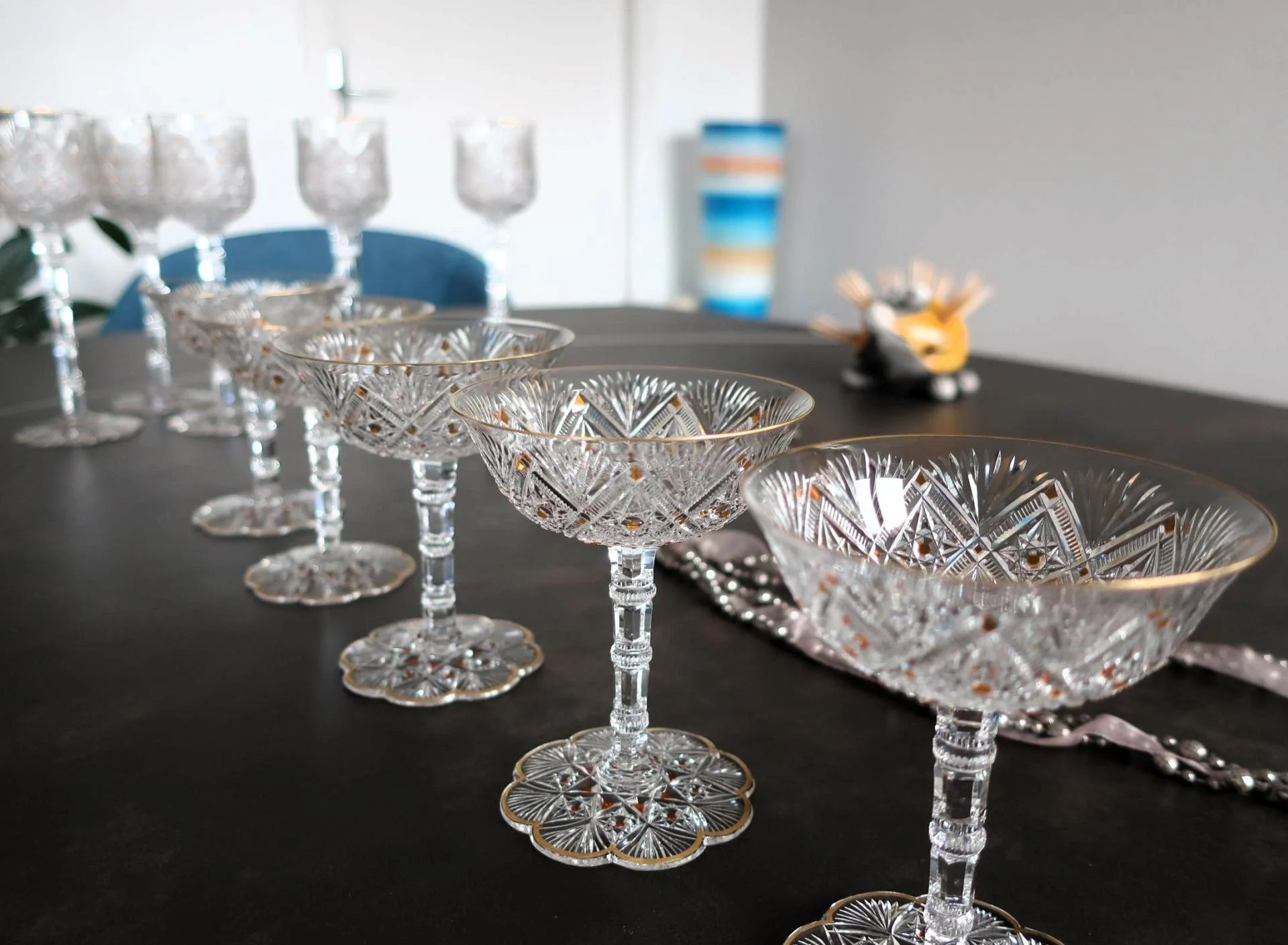 Le service Pau appartient aux collections patrimoniales de la maison Baccarat, au point d’être aujourd’hui conservé dans son musée parmi les créations les plus remarquables de la manufacture. Il y est présenté sur une table dressée aux côtés de lignes emblématiques telles que Juvisy, Tsar ou encore Beauvais, témoignant de l’importance historique de ce modèle dans l’univers Baccarat. Cette sophistication du dessin et cette maîtrise du geste illustrent parfaitement ce qui permit à Baccarat de rayonner à l’international à travers ses commandes les plus prestigieuses. Soufflé bouche, orné d’une taille diamants pierreries, d’un pied festonné et d’un cristal doublé, ce modèle fut présenté lors de l’Exposition Internationale de l'Est de la France à Nancy en 1909, avant d’être commandé par le maharadjah de Kapurthala, consacrant ainsi son statut de pièce d’exception.