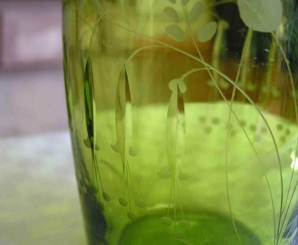 Cet ensemble est composé de 2 carafes + de 8 verres et de son plateau. Peu courant dans cette couleur. Au catalogue de 1908.