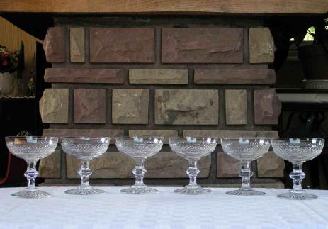 Un service chargé en histoire...En 1834, les verres en cristal Trianon de la cristallerie Saint-Louis inaugurent l'ère des services de verres, un modèle de raffinement. Taille diamant, côtes plates et soupirs translucides irisent la lumière en une symphonie. Ce n'est pas un hasard si dans les années 1960, ce service ornaient les tables de l'Elysée sous la présidence du Général de Gaulle. Devenu une référence de la manufacture de St-Louis, ce service continu d'être produit de nos jours. Présent dans la plupart des catalogues anciens comme récents.